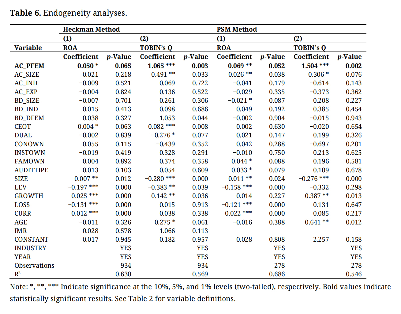 Findings: The results reveal that the presence of at least one woman on an audit committee positively influences firms’ financial and market performance. These findings remain robust after addressing potential endogeneity concerns.