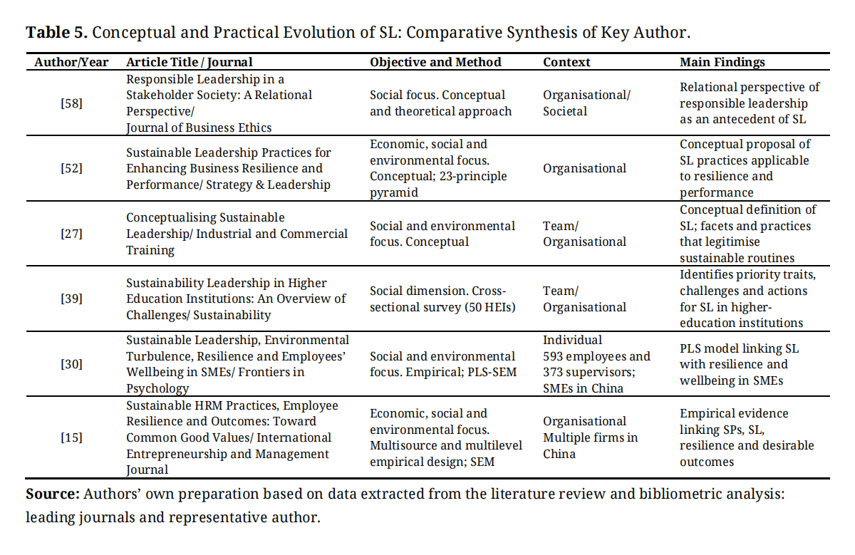 Conceptual Delimitation Between Sl and RlBuilding the SISH system requires delineating the role of leadership as a mechanism of cultural and functional cohesion. In this domain, it is imperative to recognise the conceptual proximity of responsible leadership (RL), understood as a relational and ethical approach oriented towards responding to the demands of a multi stakeholder society. In line with this, the systematic review by [28] defines RL as a distinctive construct, multilevel in nature, that integrates ethical, social and environmental responsibilities and emphasises accountability and trust in the leader’s relationship with diverse stakeholder groups. Likewise [29], synthesising eighteen years of research, highlight the consolidation of RL and organise the existing evidence on its antecedents, mediating mechanisms, contingent conditions and outcomes, providing criteria to differentiate it from other moral leadership approaches and to explain its contribution to long term outcomes linked to sustainability and stakeholder relations.
