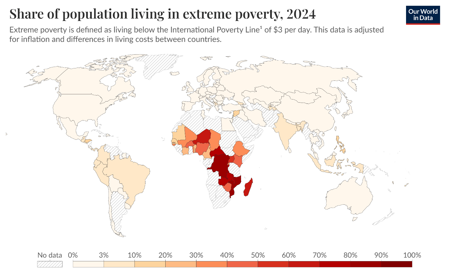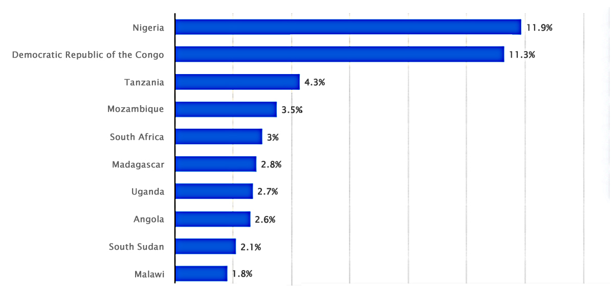 Figure 1. Ten African countries with the highest share of global population living below the extreme poverty line in 2023 [40].