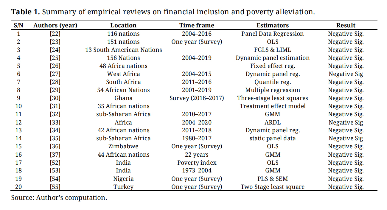 Table 1. Summary of empirical reviews on financial inclusion and poverty alleviation.