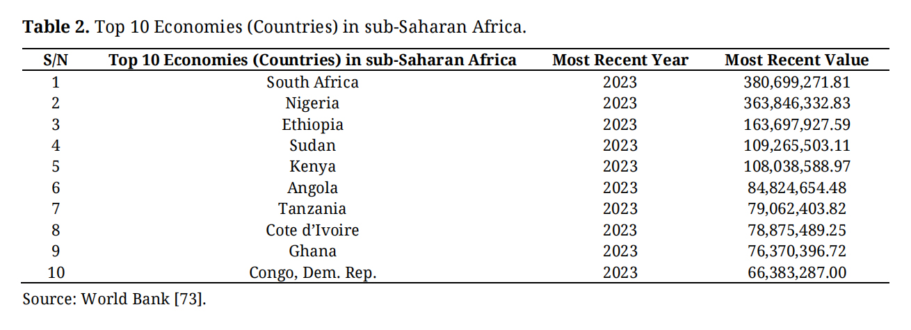 Table 2. Top 10 Economies (Countries) in sub-Saharan Africa.